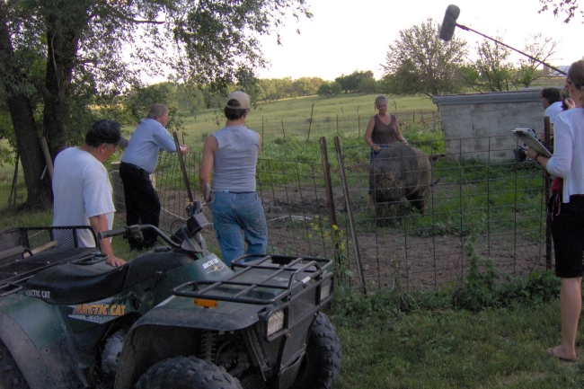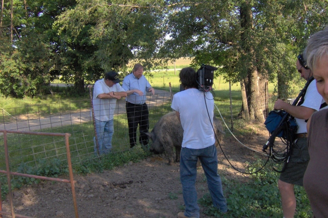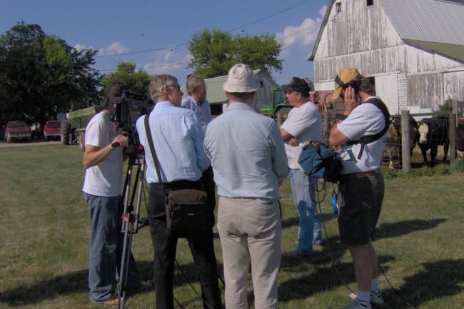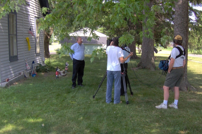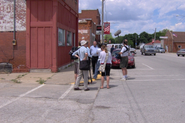 The crew, which arrived in Winfield after a week of filming in Des Moines, began filming at the Winfield Museum and Main St. They later planned to head out to the surrounding area and film a farm. (webmaster note: They filmed at the Lavonne Klopfenstein farm and interviewed Steve Klopfenstein about the changes in agriculture.)
