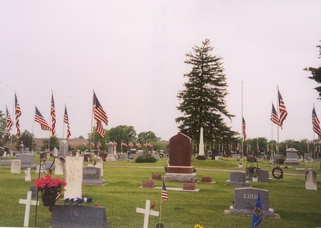 There are several "tree" stones throughout the cemetery. One of these is in the north center section and is inscribed S. E. Kepper. There is a stone tree in the center section with the name Timmer.